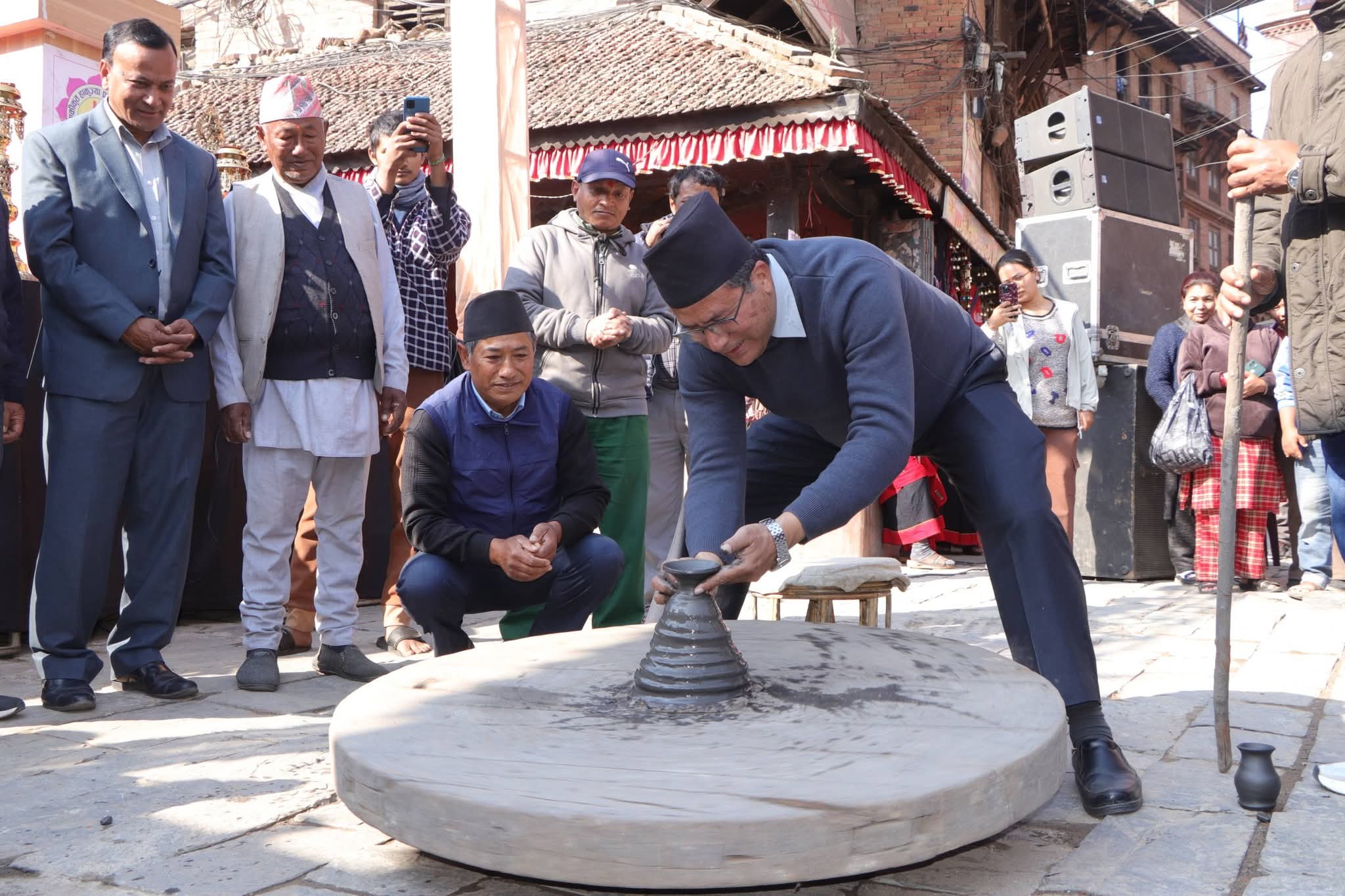 भक्तपुर, १२ पुस । भक्तपुर नगरपालिकाका प्रमुख सुनिल प्रजापतिले एकीकृत हाकुज्या प्रजापति समाज र कल्चर क्याफे एण्ड बारको संयुक्त आयोजनामा पुस ११ र १२ गते हुने पोटरी स्क्वायर स्ट्रिट फेस्टिभलको चाखमा माटोको भाडा बनाएर उद्घाटन गरेकम छन् ।