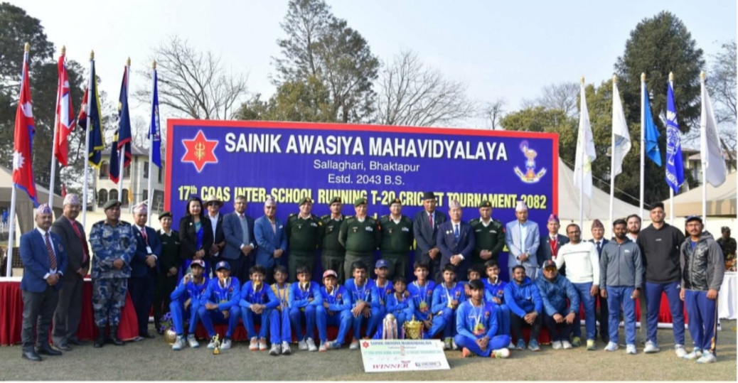 भक्तपुर, ११ फागुन । १७ औं संस्करणको प्रधान सेनापति अन्तर स्कुल टी २० कपकाे उपाधि डिएभी स्कुल जाउलाखेलले जितेको छ । नेपाल प्रहरी स्कुल साँगालाई ३० रनले पराजित गर्दै डिएभी स्कुलले उपाधि जितेको हाे । सैनिक आवासीय महाविद्यालय सल्लाघारीकाे आयोजनामा भक्तपुरमा साेमबार भएकाे फाइनल खेलमा पहिले ब्याटिङ गरेकाे डिएभीले ९ विकेटकाे क्षतिमा १०६ रन बनाएकाे थियाे । १०७ रनकाे लक्ष्य पछ्याएको नेपाल पुलिस स्कुलले १३ ओभरमा सबै विकेट गुमाएर ७६ रन मात्र जेड्न सक्याे ।